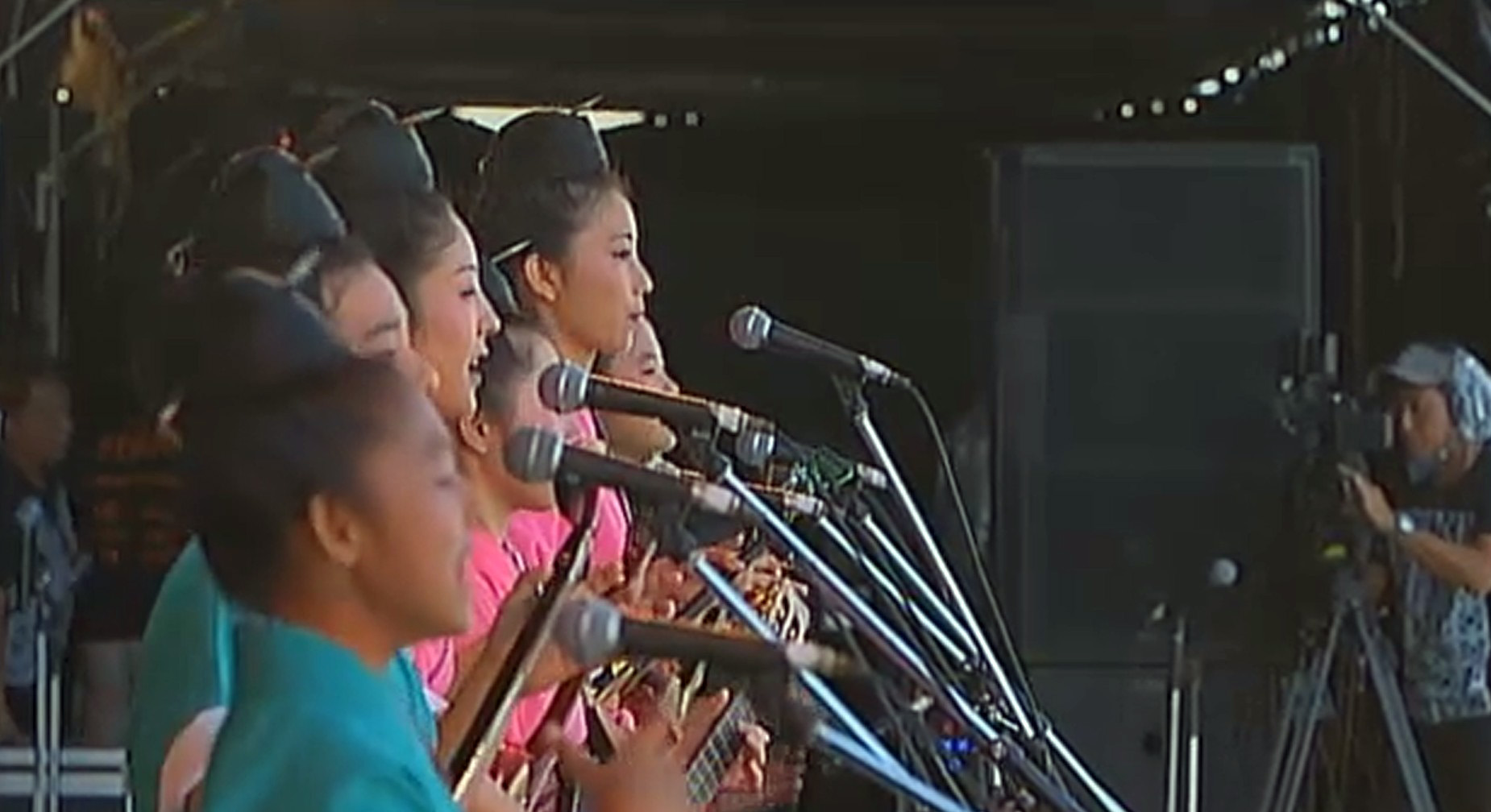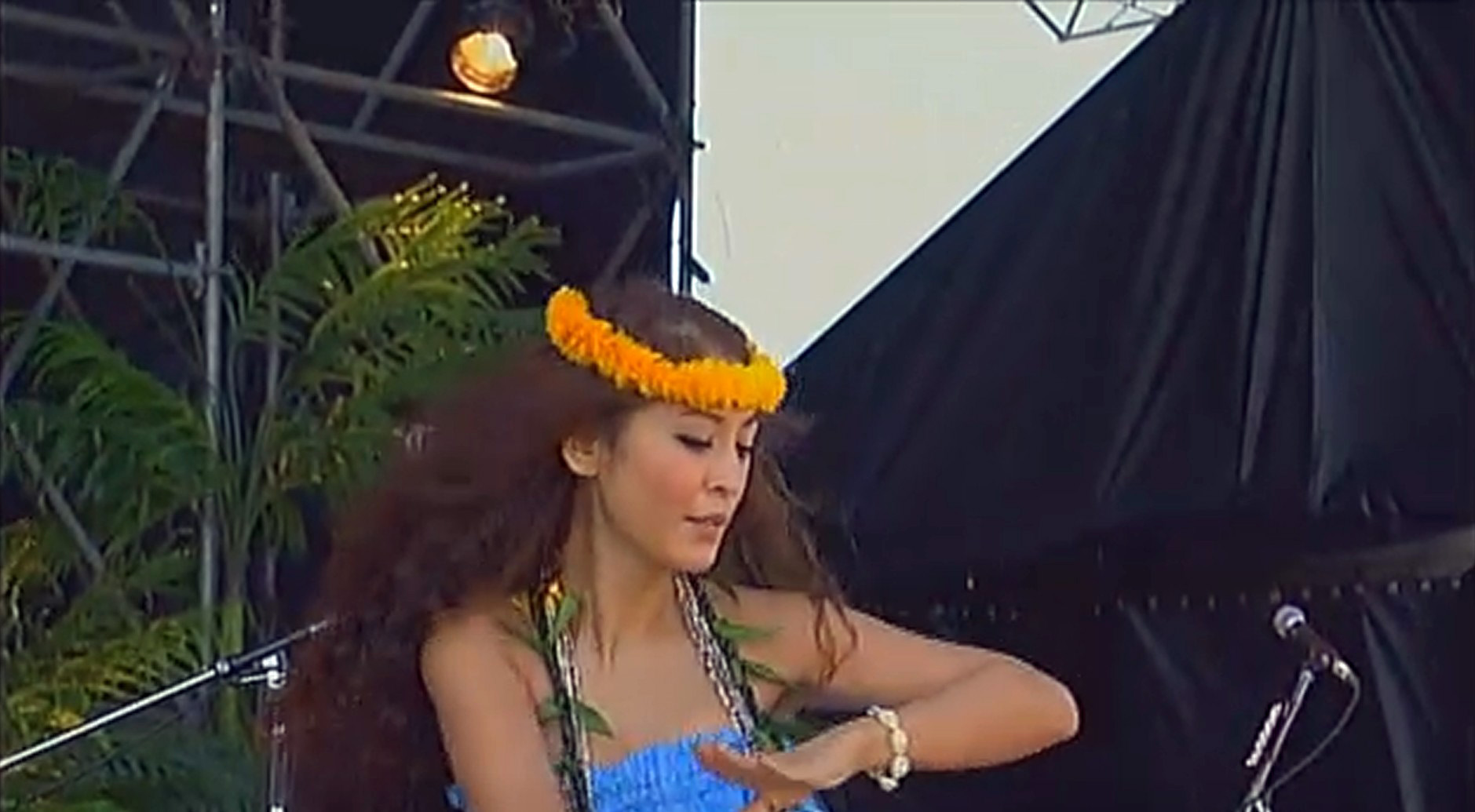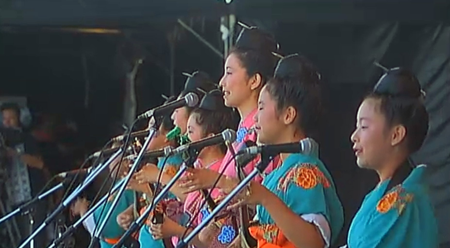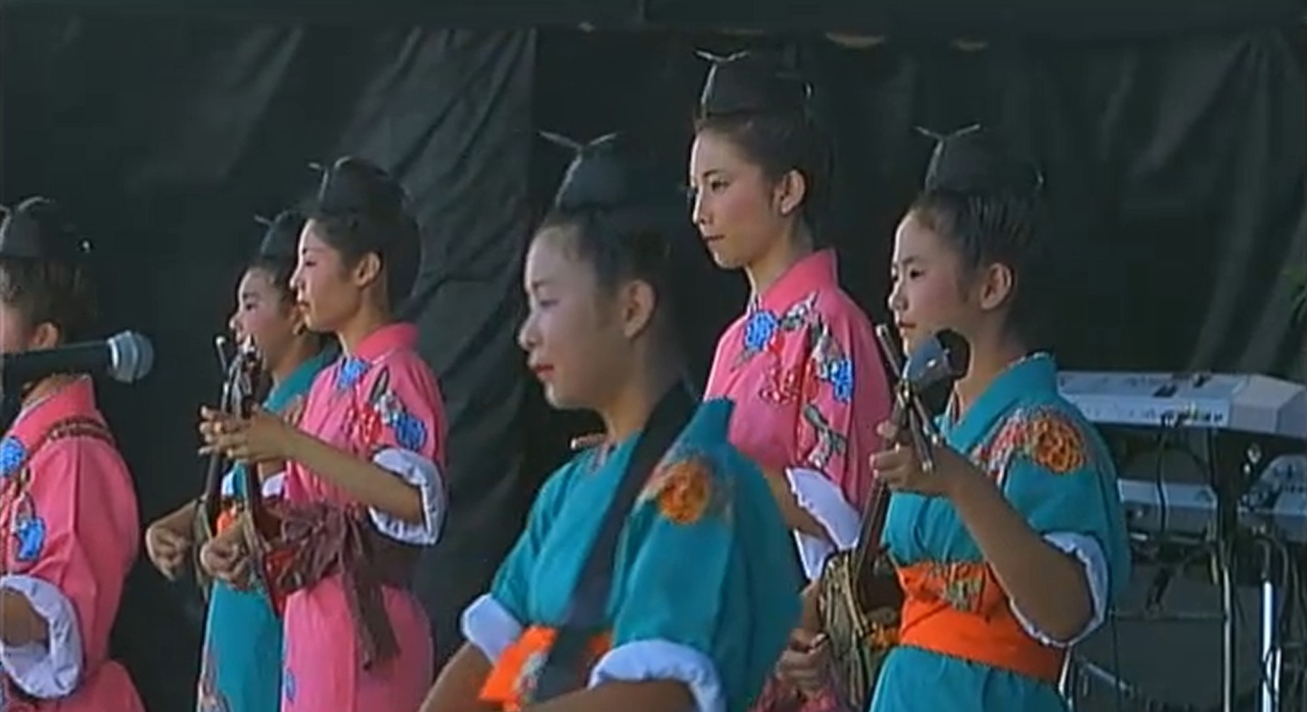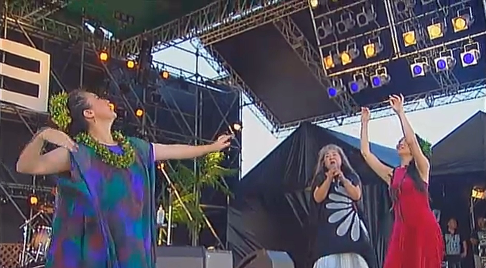 I’m not sure if the amount of Hawaiian influence built into the concert is a standard part of Okinawan concert culture today or if it’s a means to emphasize the goals of the fundraiser. Regardless, the Hawaii presence throughout the concert is immense. You can get a sense of it in the pictures below. As the end of the concert neared, all the performers returned to the stage for the traditional kachashi and the dancers, both hula and Okinawan dance, joined in, spreading out at the foot of the stage and in the aisles between the seated audience. As the concert closed, as the performers took their final bows and the cameras zoomed out and faded, the strain of a recorded version of “Hawaii Aloha”4 played softly.