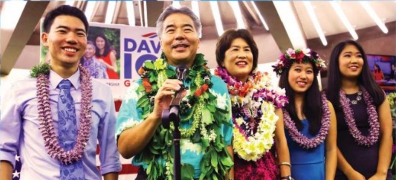 Gubernatorial candidate David Ige with wife, Dawn, and their three children, Matthew, Lauren, and Amy.