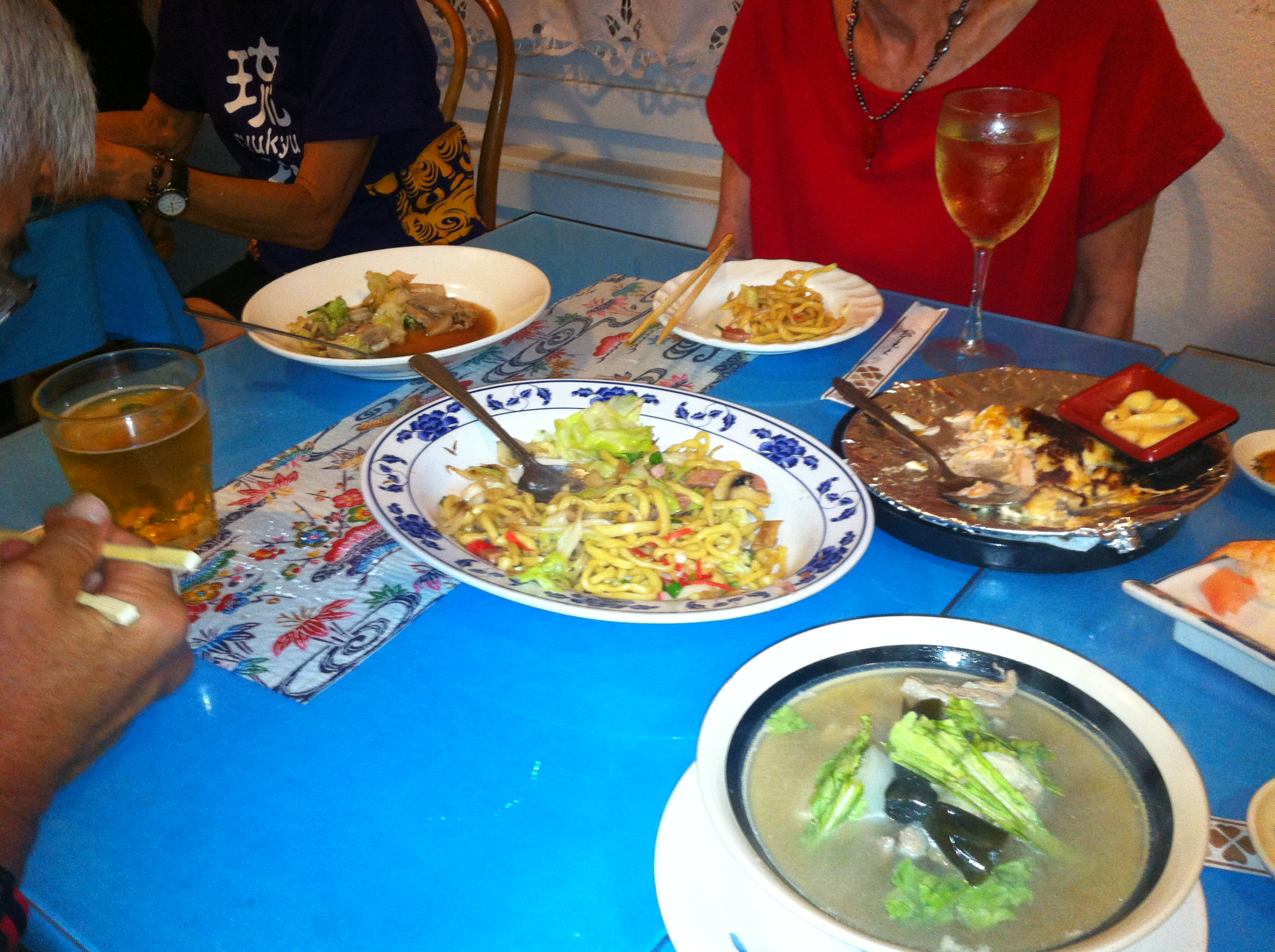 Our waiter spontaneously picked up a sanshin and sang some popular Okinawan songs, including “Asadoya Yunta” and The Boom’s hit song “Shima Uta.” We learned that he once played with a rock band in Tokyo. He ended the celebration with a kachashi number that had everyone dancing in their seats.