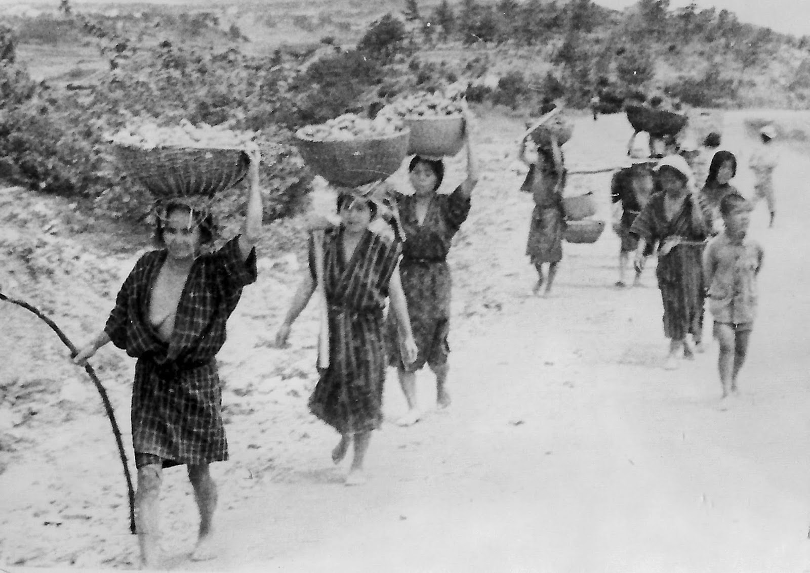 The following photos of civilians caught up in the turmoil of the Battle of Okinawa in 1945 are from the late Lieutenant Reinhart T. Kowallis’s collection. Most were taken by the Lieutenant, but some may have been taken by other servicemen. He served for a year in the Pacific during World War II, including the Battle of Okinawa. These photos are being shared through the kind permission of his son, Bart J. Kowallis, Associate Dean and Professor, Department of Geological Sciences, Brigham Young University, Provo, Utah. According to Bart Kowallis, his father “was fascinated by the civilians in Okinawa,” and this, I believe, is the quality that emanates from these rare glimpses into the lives of ordinary Okinawans during an extraordinary period in their lives.