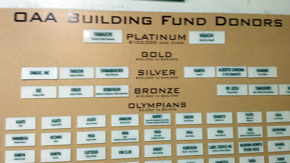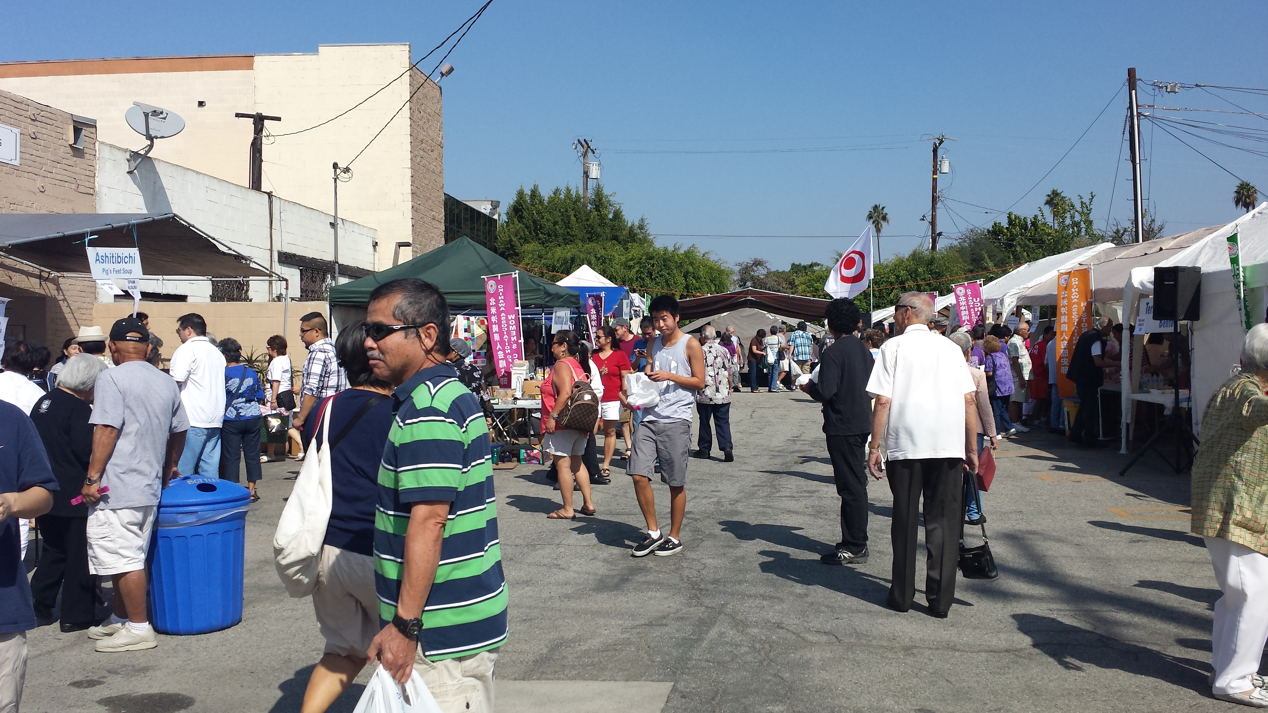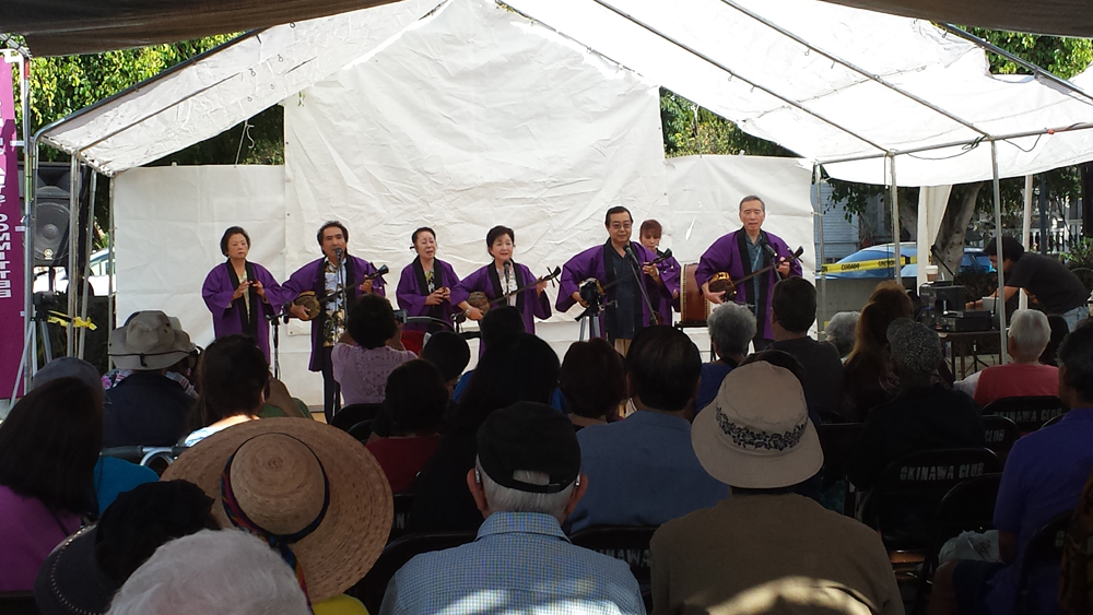 Yesterday I was able to take James with me to the Okinawa Association of America’s Annual Bazaar in Gardena, CA. The vendors and performance stage were in the parking lot. The dining room, which served soba, was also open to the festival goers. The photos below are of the dining room where they had a donor plaque on the wall, and I saw a “Masao Shimabukuro” from Okinawa as one of the more prominent names. I know it’s a very common last name, but I wonder if we are related somehow?