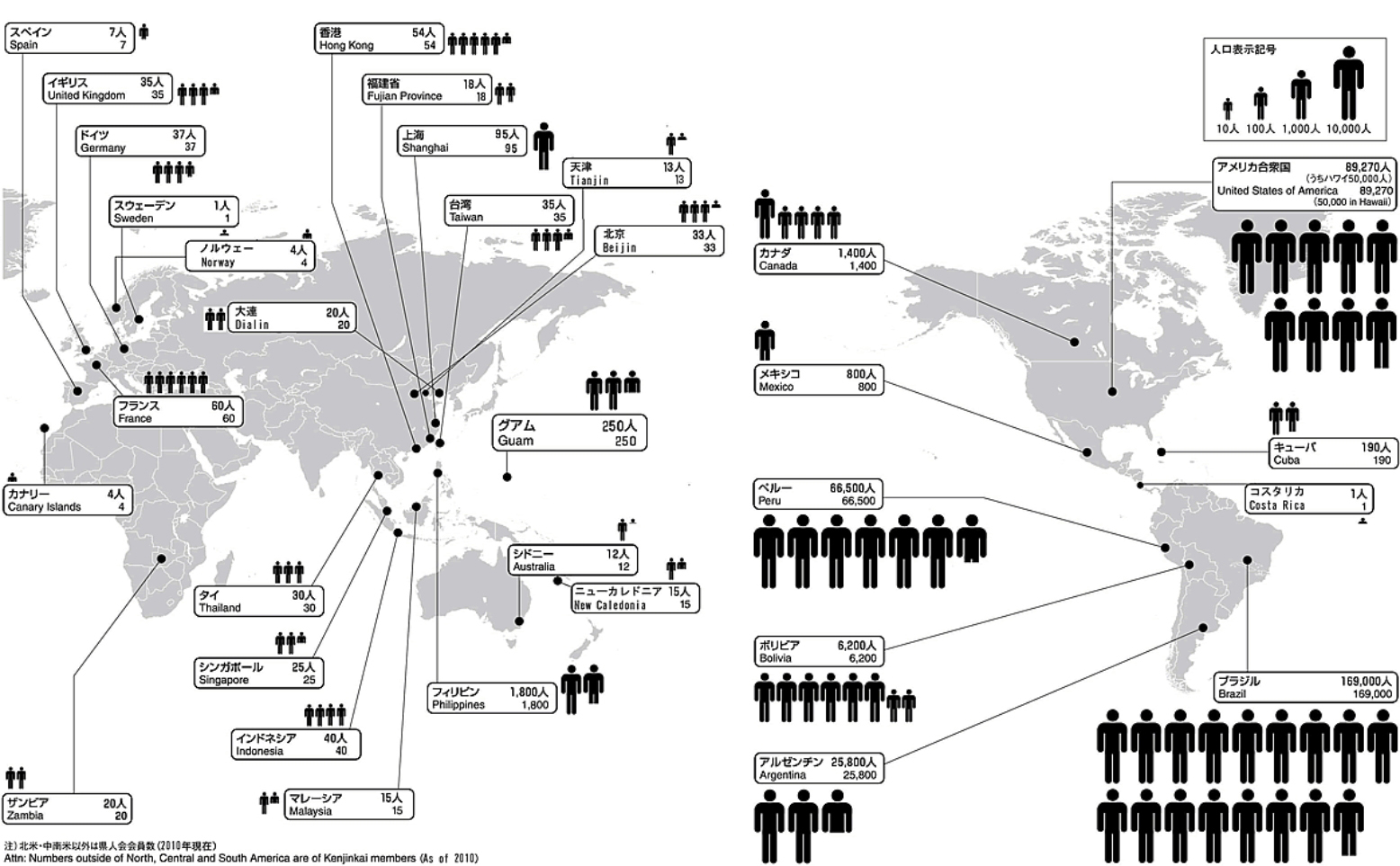 Source Oki-Ngo (NPO Okinawa NGO Center, 3-23-52 Ginowan, Ginowan City, Okinawa, Japan 901-2211). Apparently prepared for the 5th Worldwide Uchinanchu Festival in October 2011, “Let’s Study! The Worldwide Uchinanchu Project.” I’m not sure about the accuracy of the figures, how they were calculated, by whom, and when. Still, it provides an interesting starting point for further research and discussion. Click image to enlarge.