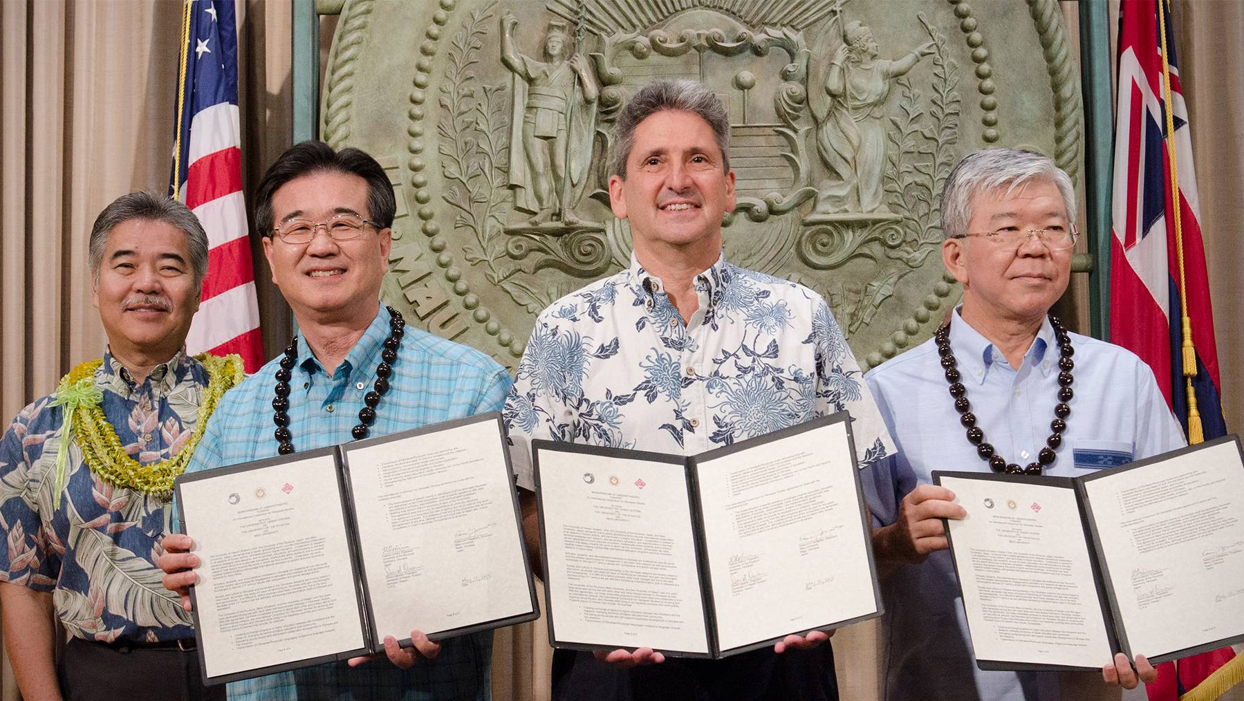 The University of Hawaiʻi, the University of the Ryukyus and Meio University signed a memorandum of understanding at the Hawaiʻi State Capitol on May 12, 2015. This agreement builds on the work the universities have been doing over many decades.