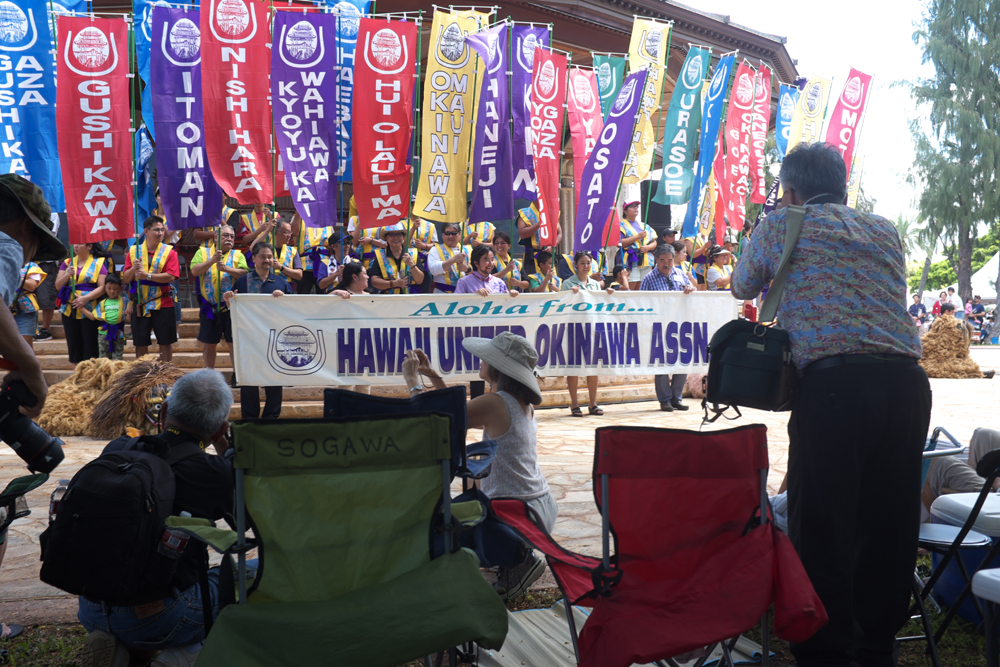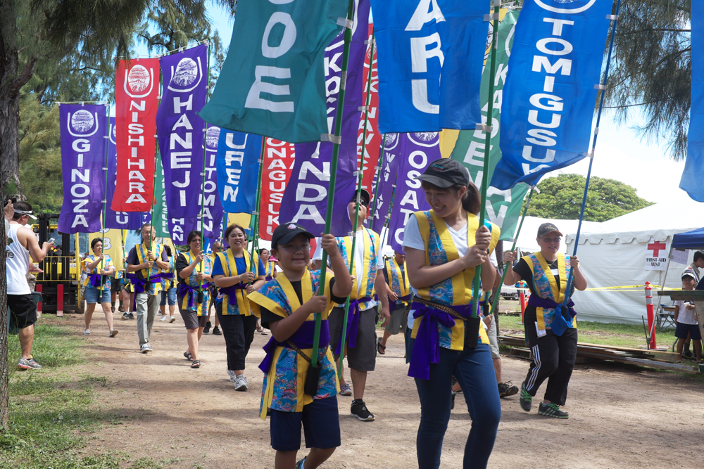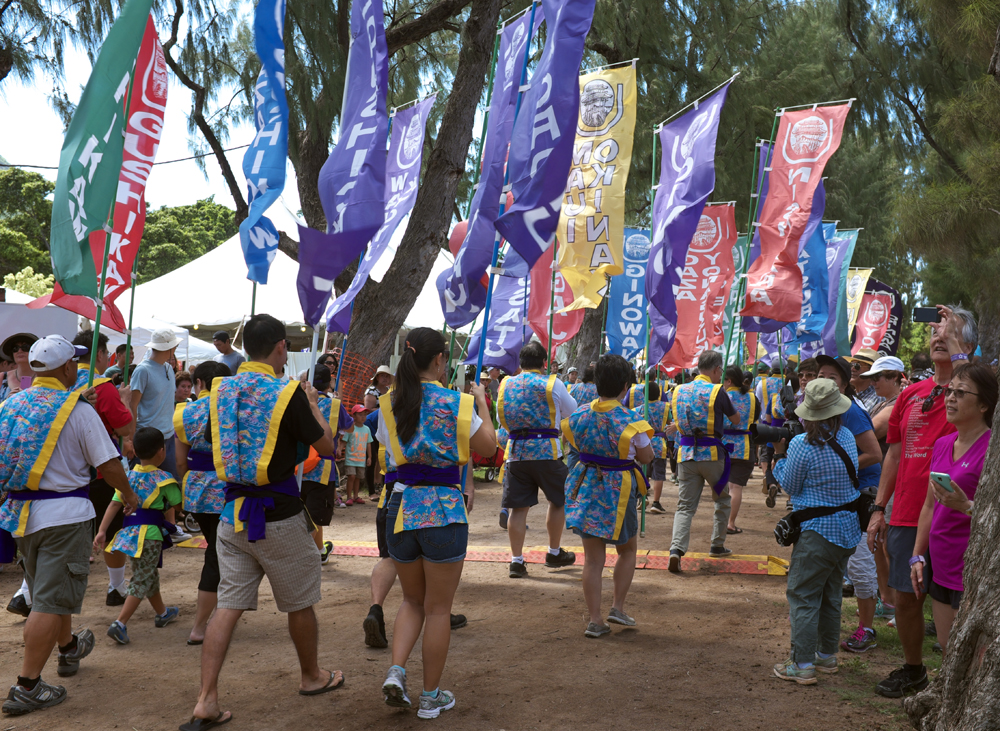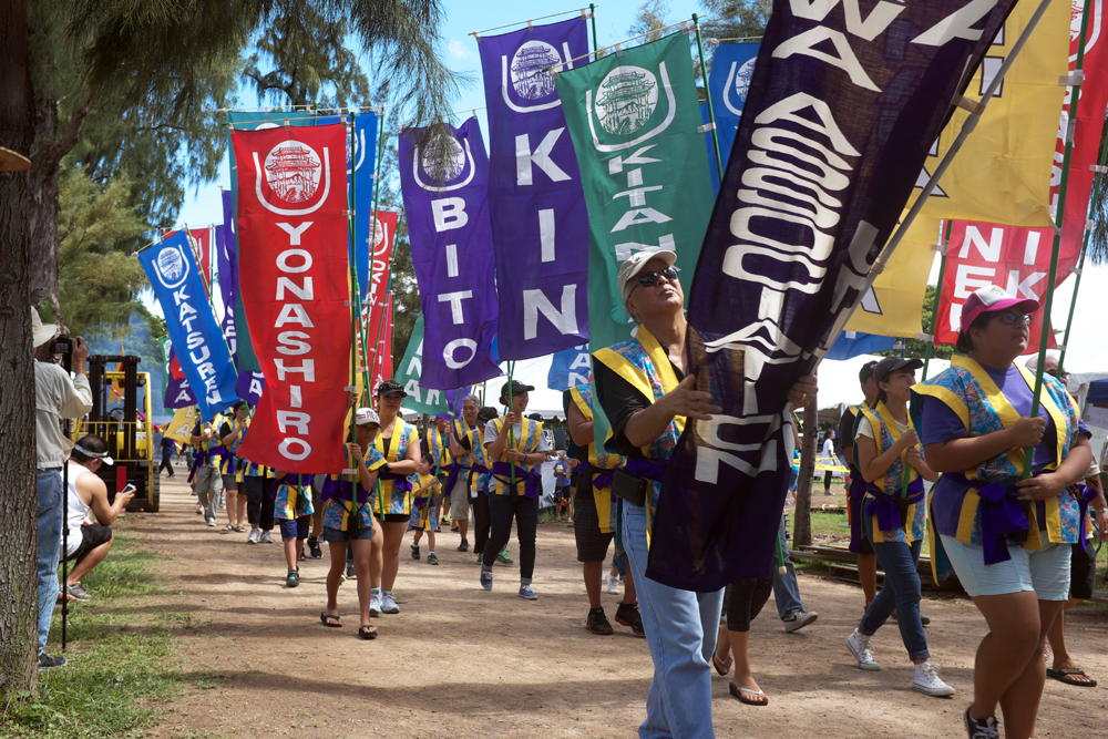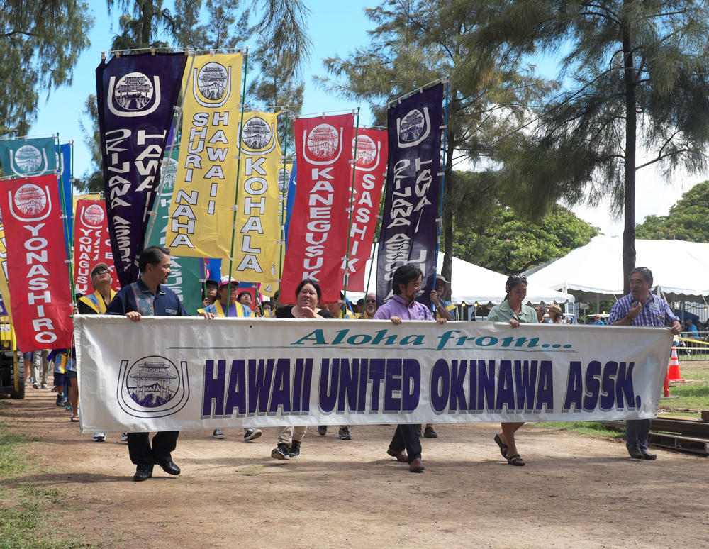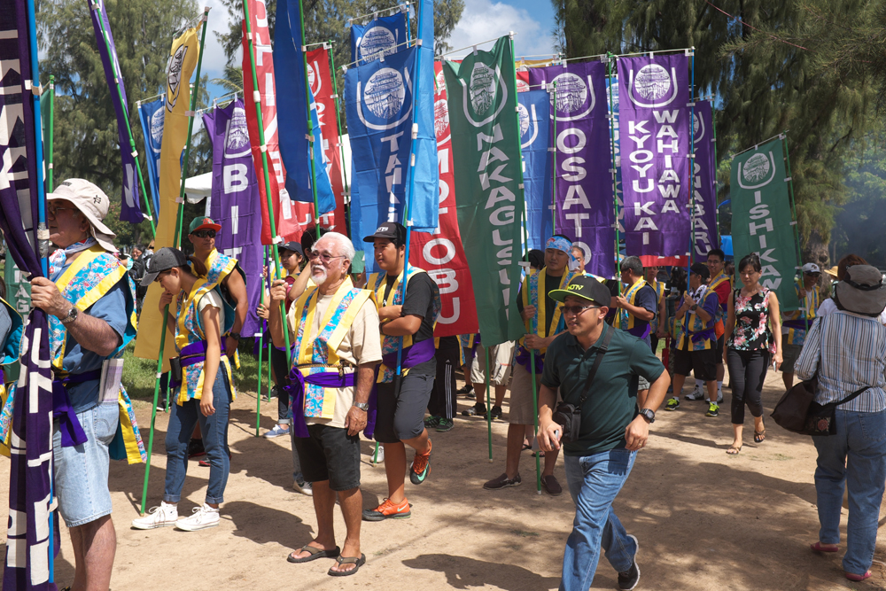 Next came the procession of banners for the organizations that make up the Hawaii United Okinawa Association (HUOA).
