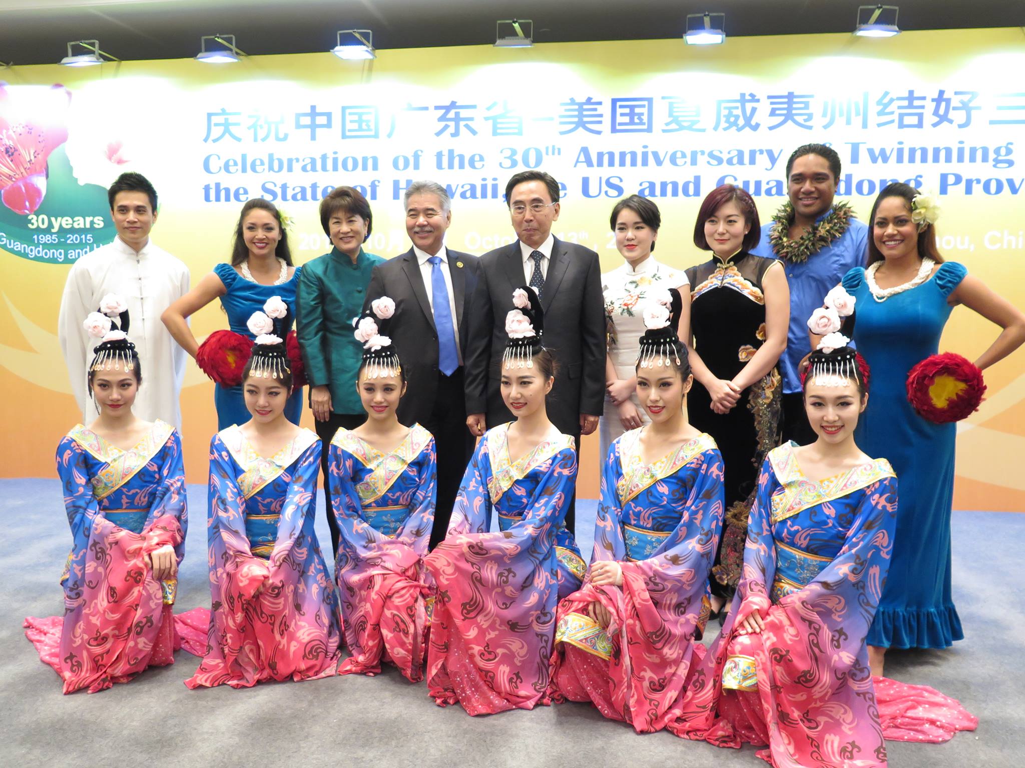 Swan Hotel. 40 member delegation attended the gala reception hosted by Guangdong Province which featured entertainers from Hawaii and Guangdong.