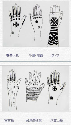 On the Ryukyu Islands, tattoos were usually done on the back of the hand, fingers and forearm. Among the Ainu, it was customary to tattoo the part around the mouth, hands and wrists.